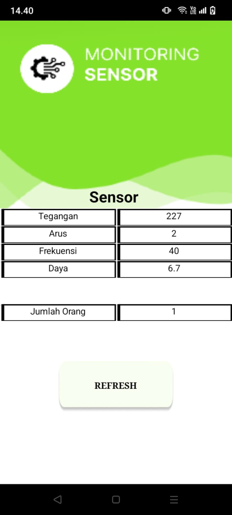 Sensor infrared (IR) mendeteksi keberadaan orang di ruangan. Jika ada aktivitas, sensor mengirimkan sinyal ke ESP32 untuk menghidupkan lampu. Sementara itu, sensor PZEM mengukur tegangan dan arus pada lampu, dan data ini ditampilkan di LCD sebagai informasi konsumsi listrik. - Kontrol Otomatis Lampu
