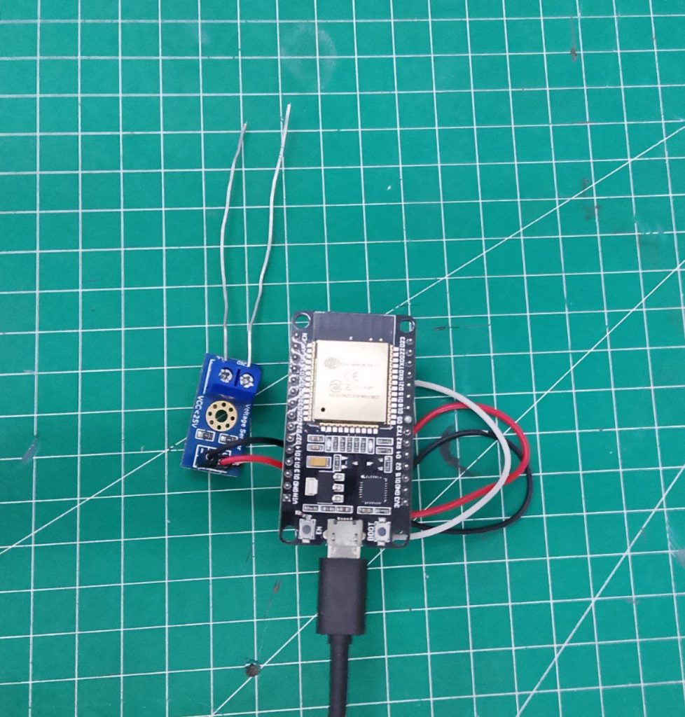 - Sambungkan output sensor ke GPIO 34 di ESP32.