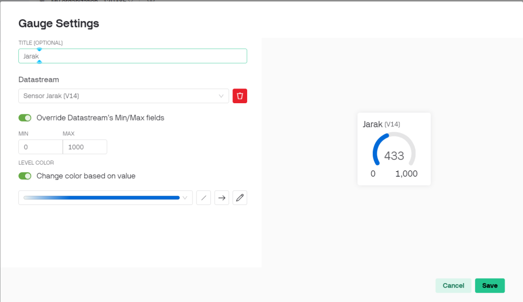 Blynk.virtualWrite(V14, distance); // Use V0 for a display widget in your Blynk app